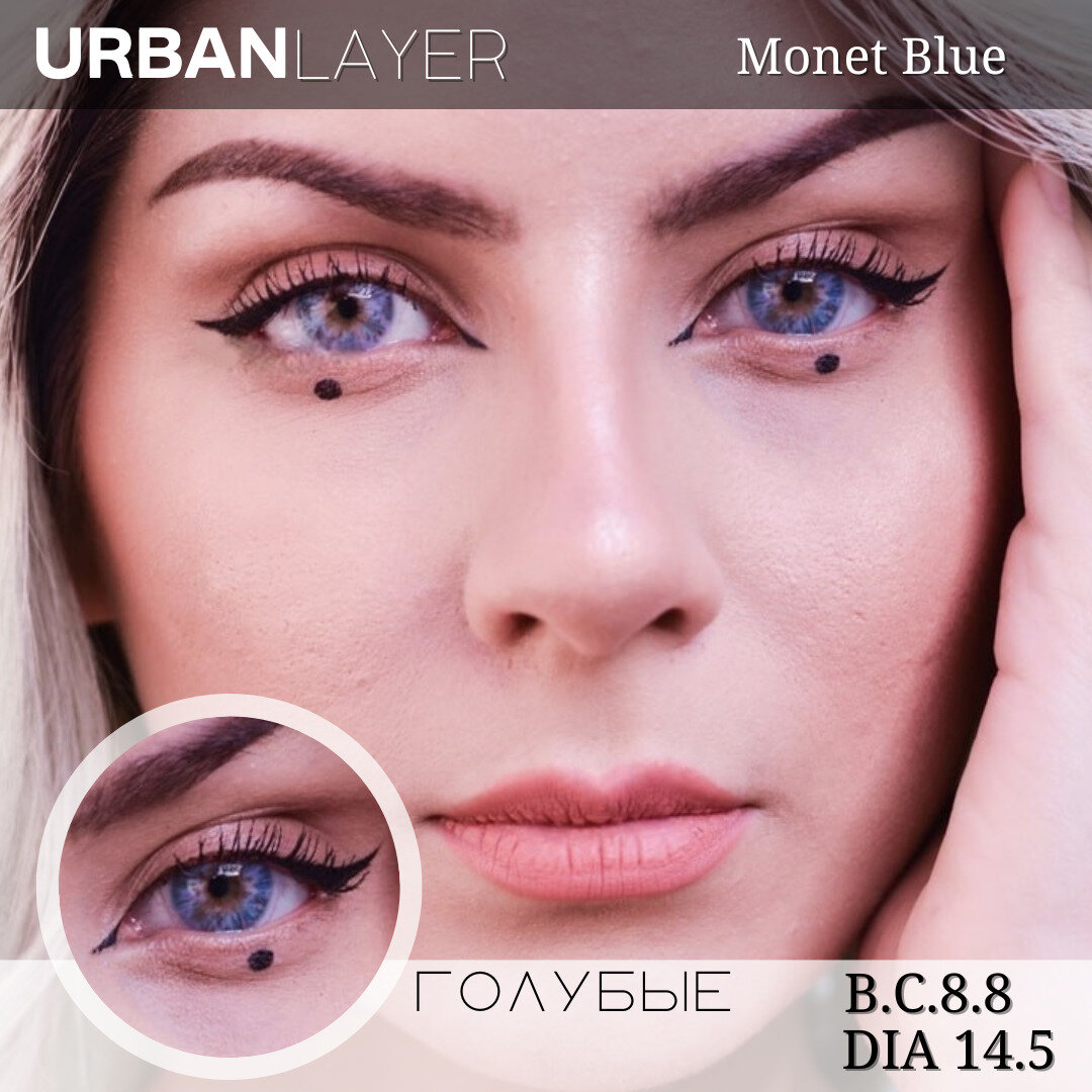 Цветные контактные линзы Urban Layer Monet Blue 12 месяцев, 0.00 / 14.5 / 8.8, голубой, фиолетовый, 2 шт.