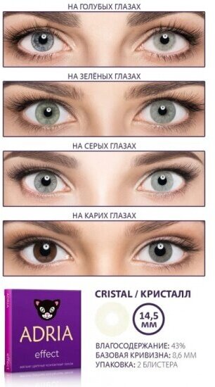 Контактные линзы цветные ADRIA, Adria Effect color, Квартальные, CRISTAL, -8,50 / 14,5 / 8,6 / 2 шт.