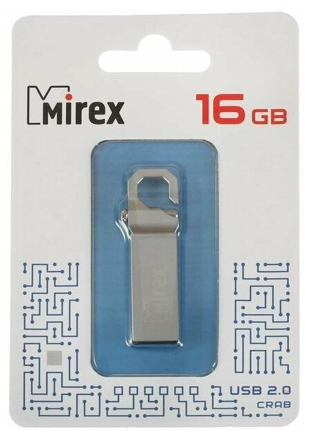 Флешка Mirex CRAB, 16 Гб, USB2.0, чт до 25 Мб/с, зап до 15 Мб/с, цвет серебристый Mirex 4245658