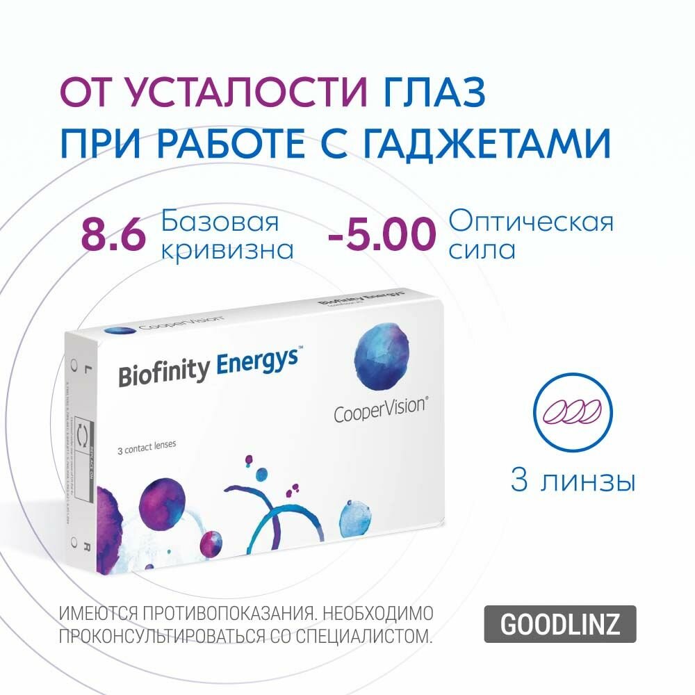 СохранитьCooperVision Biofinity Energys (3 линзы) -5.00 R 8.6 интересное: