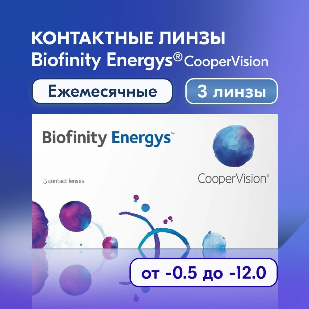 Контактные линзы CooperVision, Biofinity Energys, 3 линзы / 8.6 / -3.00 / ежемесячные / прозрачные