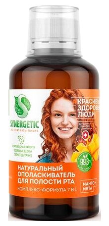 Ополаскиватель для полости рта SYNERGETIC комплекс-формула 7в1 "манго + мята" натуральный, без фтора, 200мл