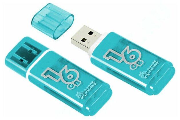 2 шт. Память Smart Buy "Glossy" 64GB, USB 2.0 Flash Drive, голубой