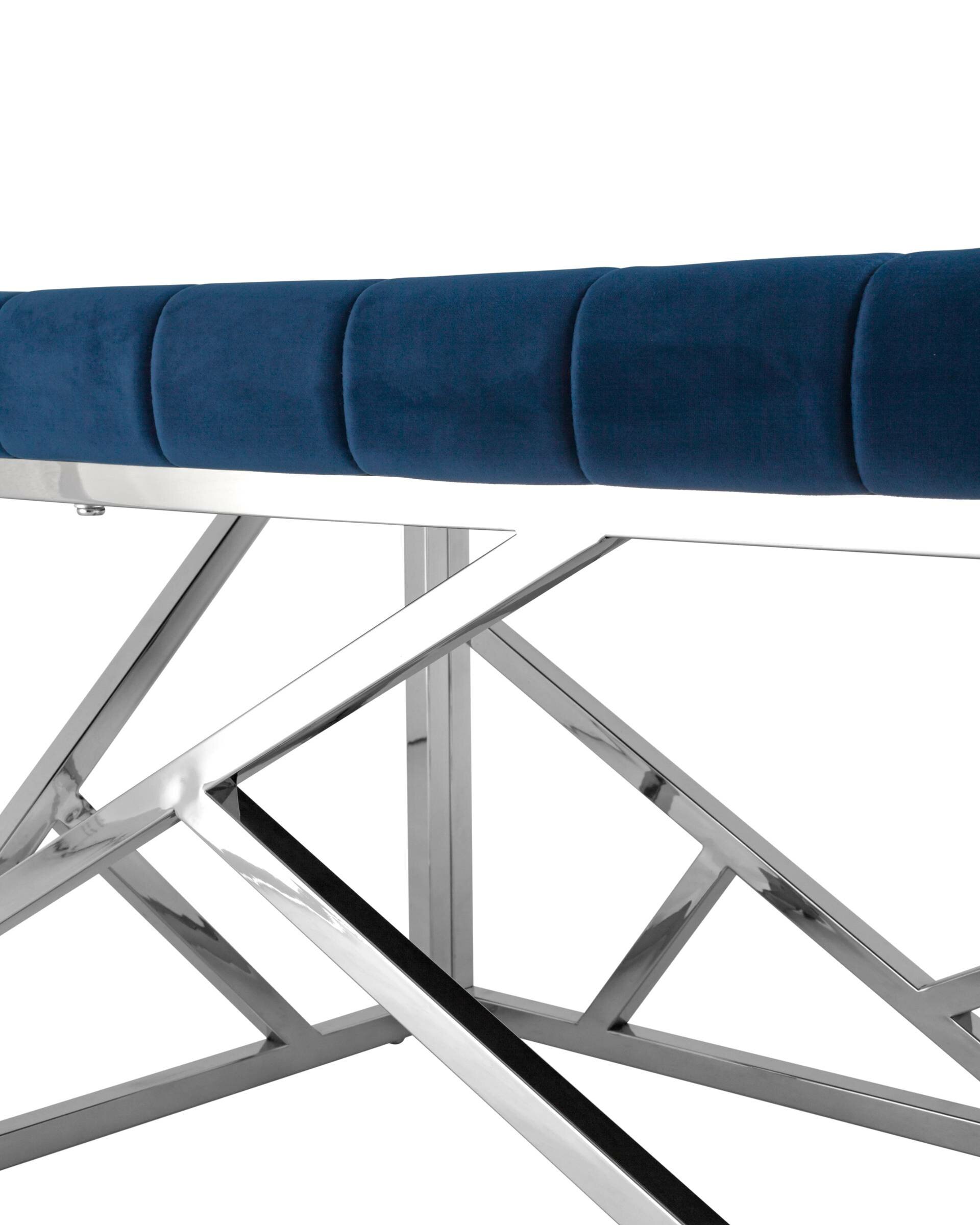 Банкетка-скамейка АРТ деко велюр синий сталь серебро