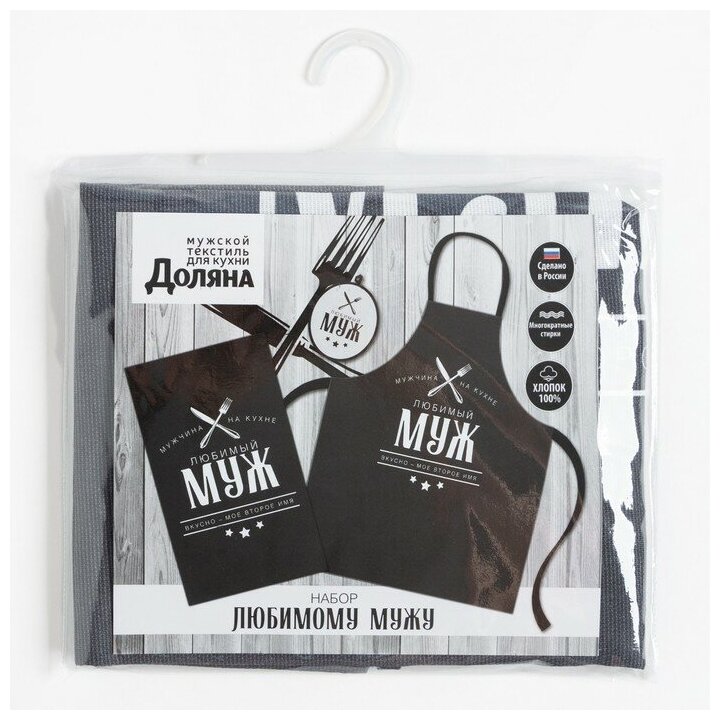 Доляна Кухонный набор (3 предмета) «Любимый муж», фартук 70х60 см, прихватка 20х20 см, полотенце 35х60см
