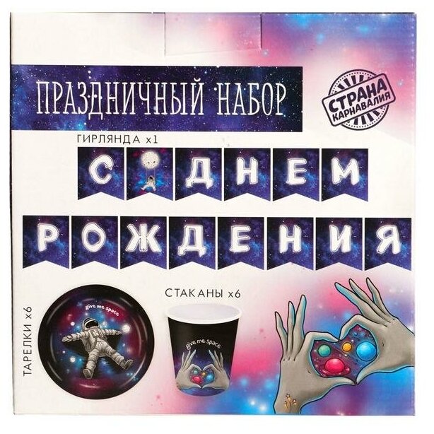 Набор бумажной посуды "Космического дня рождения", 6 тарелок, 6 стаканов, 1 гирлянда интересное: