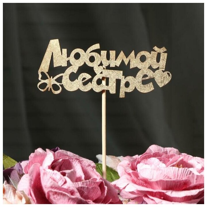Купить Топпер Дарим Красиво "Любимой сестре, бабочка, сердечко" на подвесе, золотой