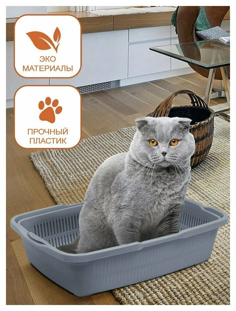 Лоток для кошек средний размер с сеткой, Серый, 42х32х11 см интересное: