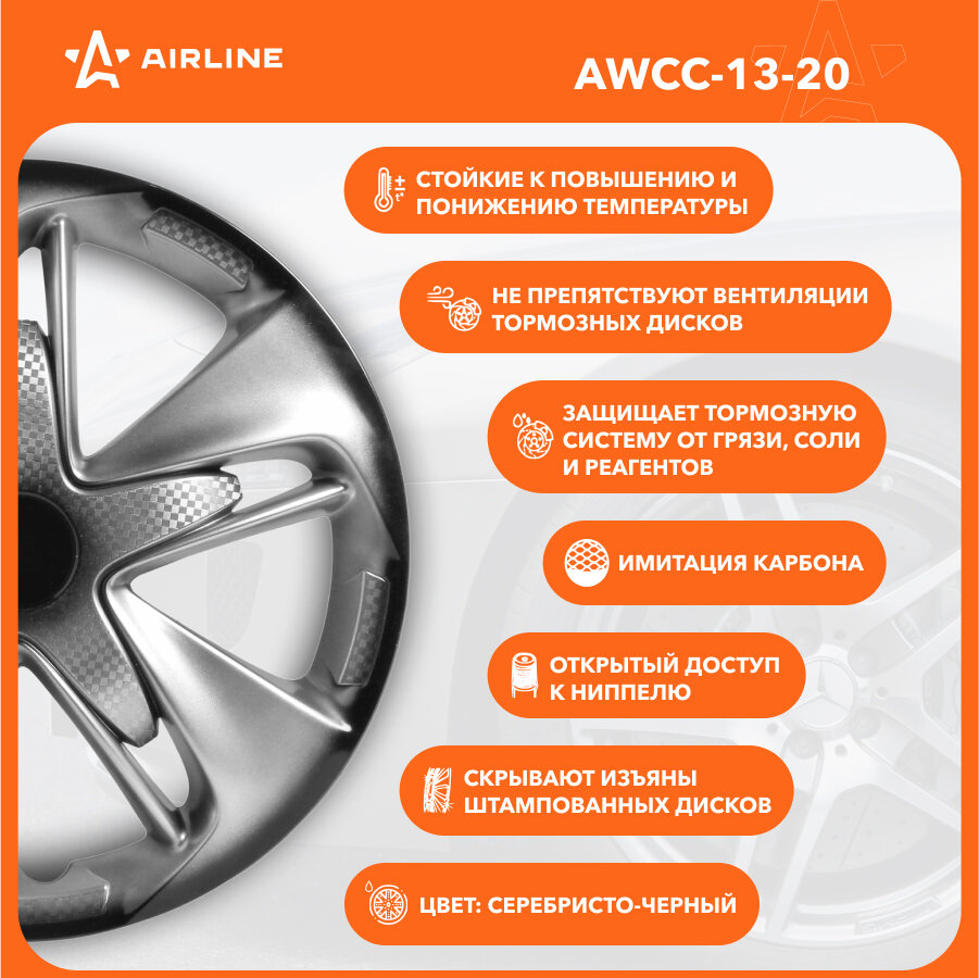 Колпаки Колесные Airline 13" "Супер Астра +", Серебристо-Черный, Карбон, Компл. AIRLINE арт. AWCC1320