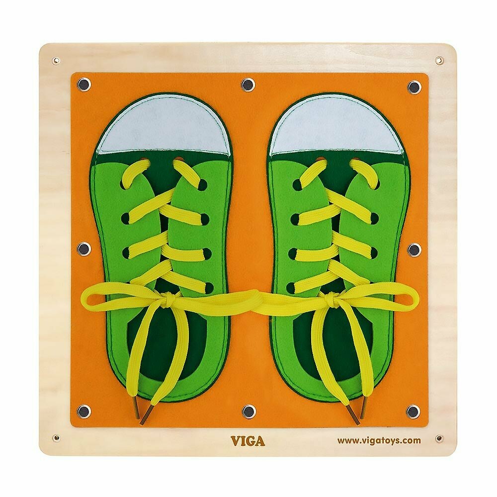 Купить Игра развивающая "Одень и застегни"в коробке 4 панели с разными видами застежек и шнурков VIGA 51628