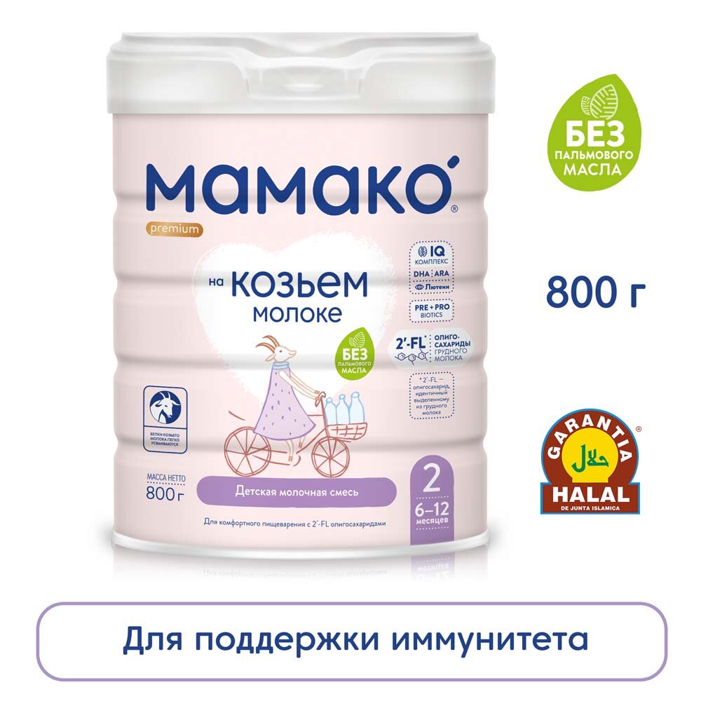 Мамако 2 Премиум - мол. смесь на основе козьего молока с олигосахаридами грудного молока , 6-12 мес., 800 г