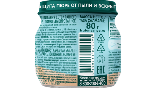 Пюре мясное Фруто-Няня "телятина", 80г - фрутоняня интересное: