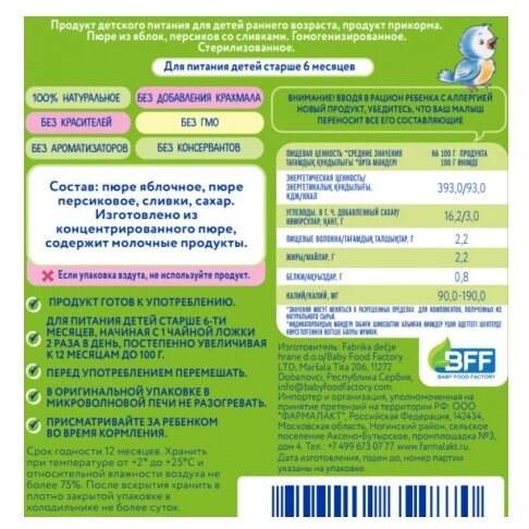 Легкий, приятный на вкус фруктовый микс яблока и персика, залакированный нежными сливками. Большой объем дой пака 220 г. Можно долго посасывать из горлышка. Пюре со сливками большой емкости кроме, Когда Я вырасту делает только Фрутоняня. Но она делает их в стекле что увеличивает вес заказа в 2 раза. Яндекс маркет такое пюре на север Камчатки не отправляет. |