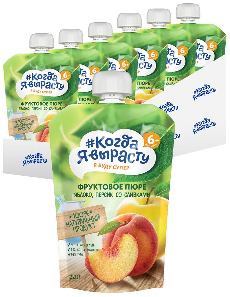 Когда Я вырасту Пюре яблоко, персик, сливки, 220г., 6шт. интересное: