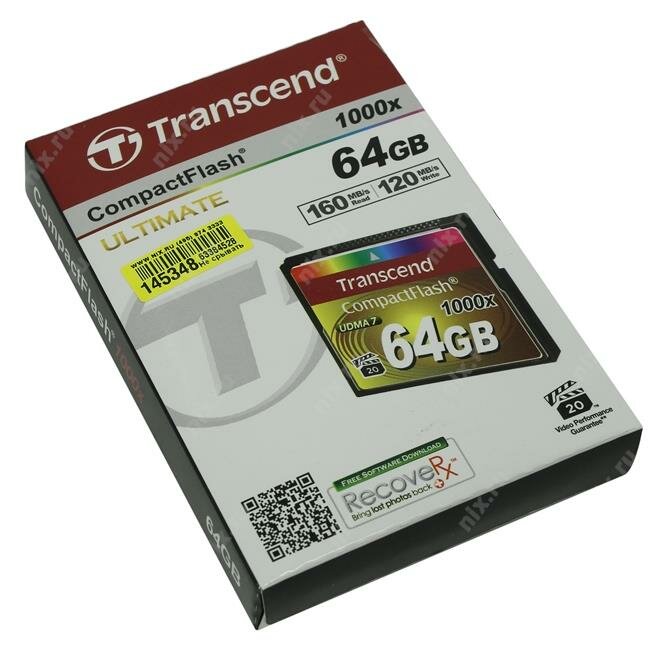 Карта памяти Transcend Compact Flash 64 ГБ, R/W 160/120 МБ/с (TS64GCF1000)