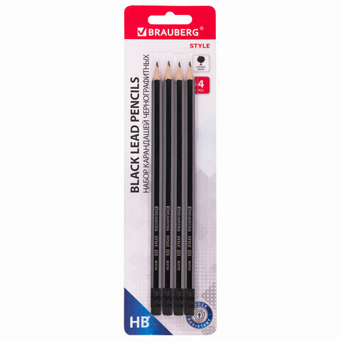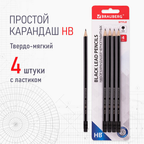 Набор карандашей чернографитных BRAUBERG "Style" 4 шт., комплект 72 шт., HB, с ластиком, корпус черно-серый, 181718 интересное: