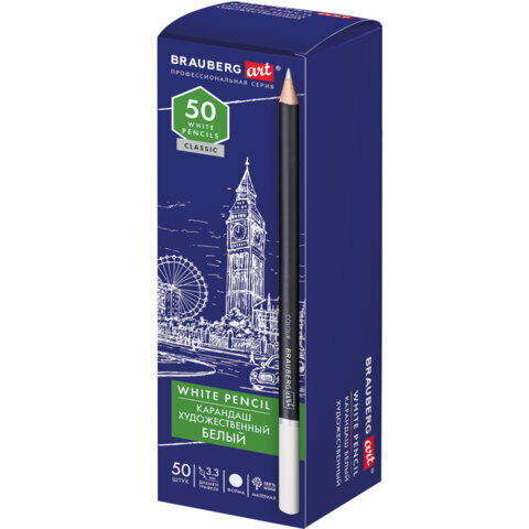 Карандаш белый художественный мягкий, комплект 50 шт., 1 штука, грифель 3.3 мм, BRAUBERG ART CLASSIC, 181921 интересное: