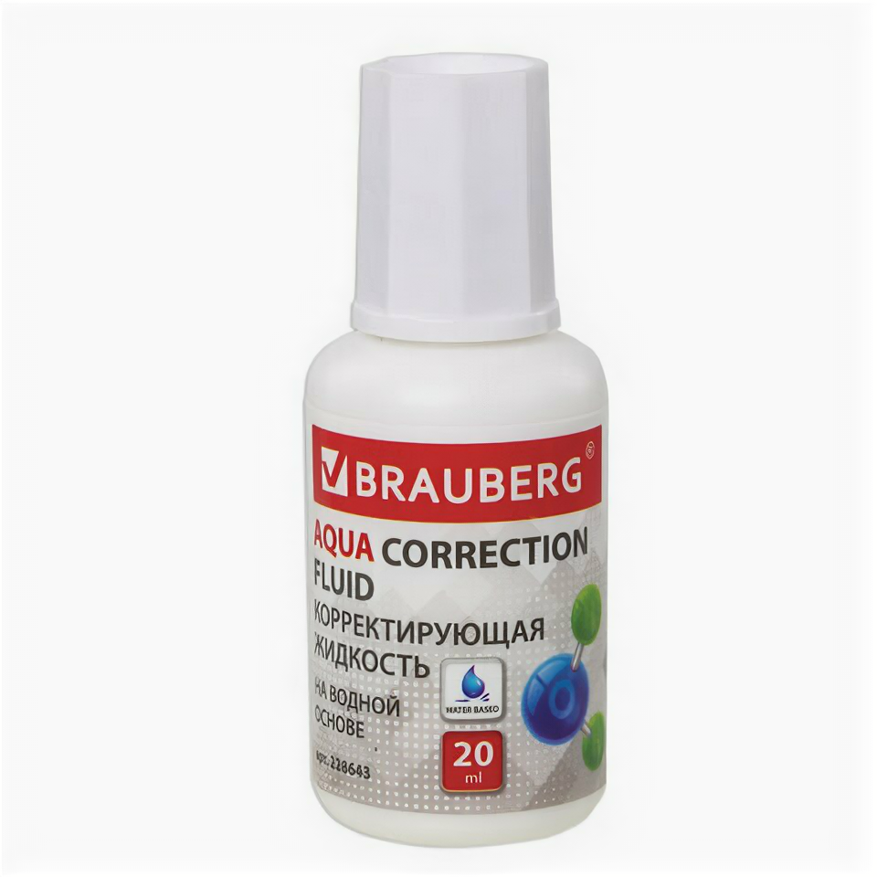 Купить Корректирующая жидкость BRAUBERG "Aqua" на водной основе 20 мл, с кисточкой, 228643 (цена за 1 ед.товара)