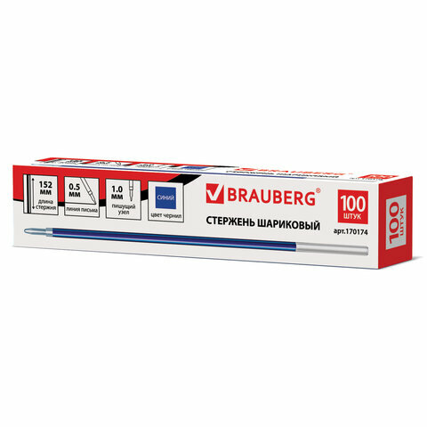 Стержень шариковый BRAUBERG 152 мм, комплект 120 шт., синий, узел 1 мм, линия письма 0.5 мм, 170174 интересное: