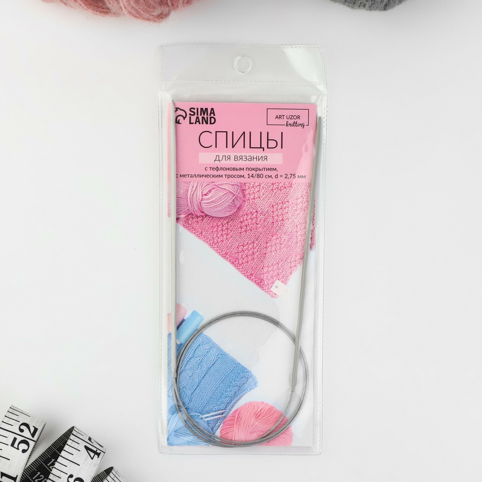 Арт Узор Спицы круговые, для вязания, с тефлоновым покрытием, с металлическим тросом, d = 2,75 мм, 14/80 см