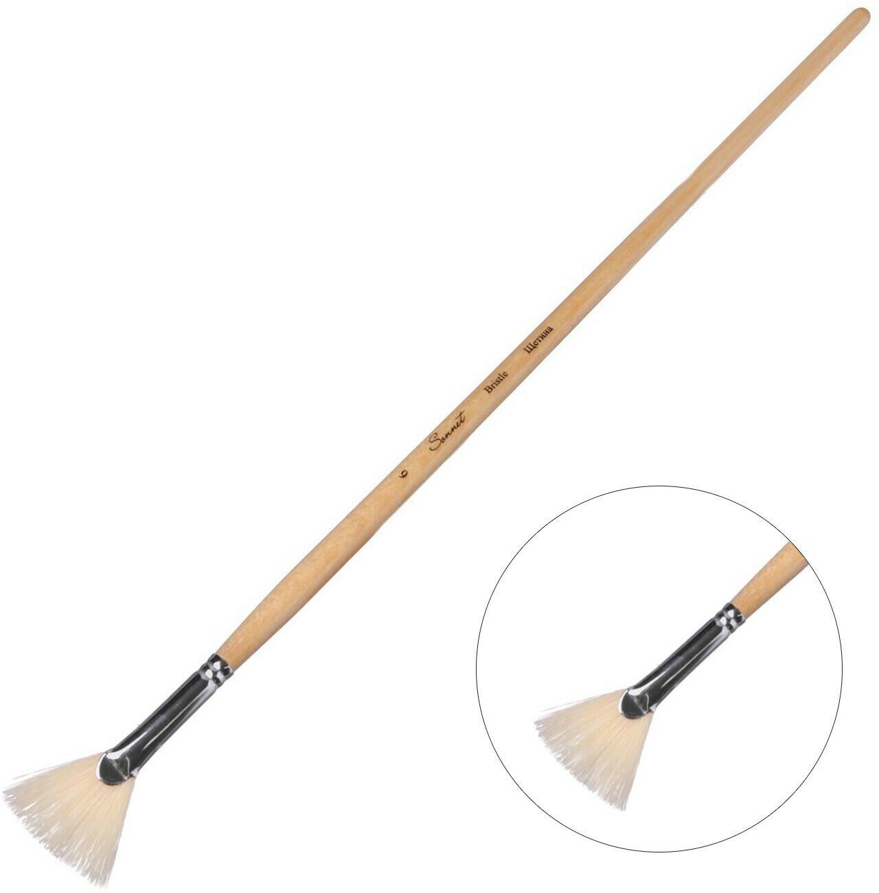 Кисть Веерная Щетина ЗХК "Сонет" № 6, длинная ручка интересное: