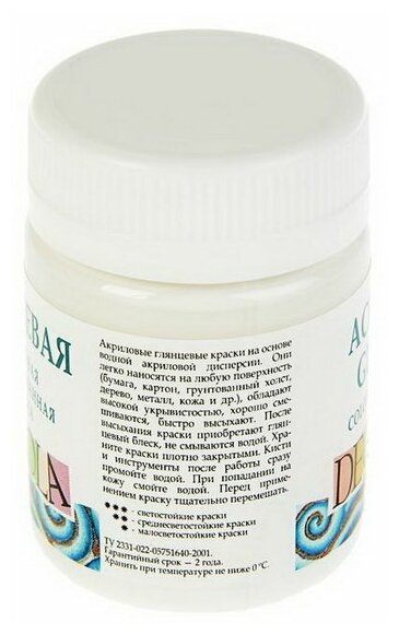 Краска акриловая художественная Decola, 50мл, глянцевая, баночка, белый, 282834