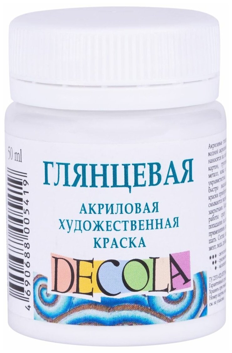 Краска акриловая художественная Decola, 50мл, глянцевая, баночка, белый ( Артикул 282834 )