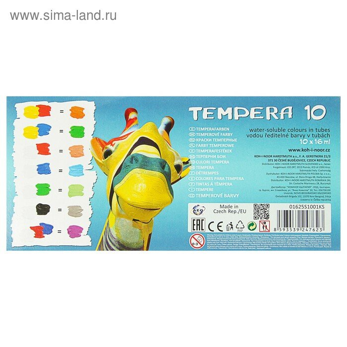 Краски темперные KOH-I-NOOR "Жираф", 10 цветов по 16 мл, в алюминиевых тубах, без кисти (01625S1001KS)