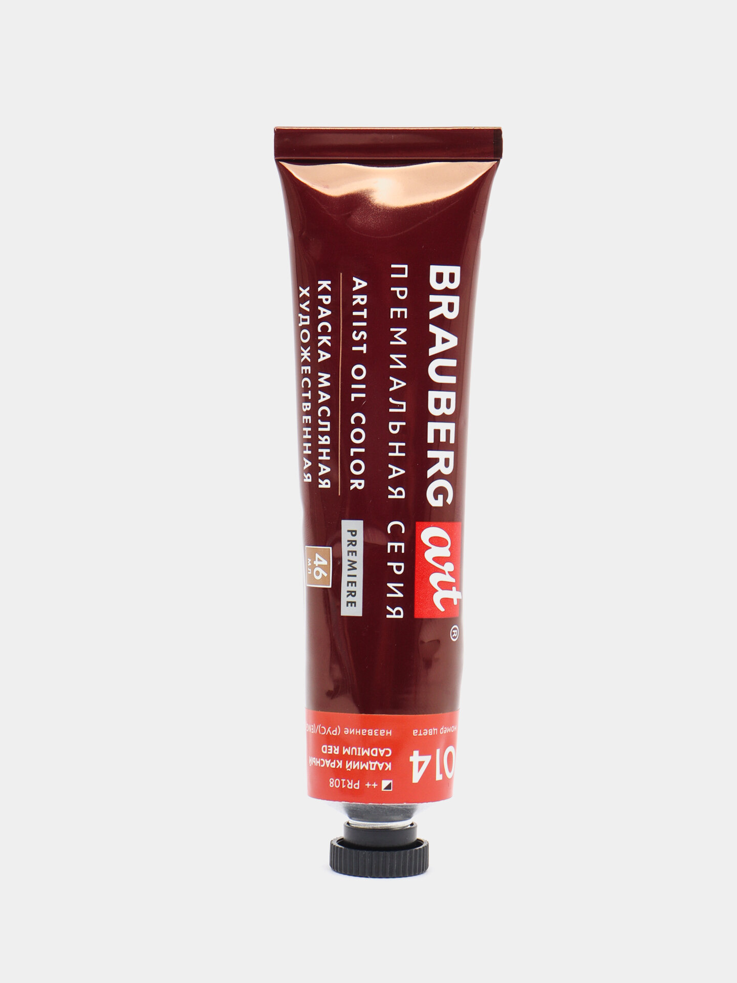 Краска масляная художественная BRAUBERG ART PREMIERE, 46 мл, проф. серия, красная темная, 191410