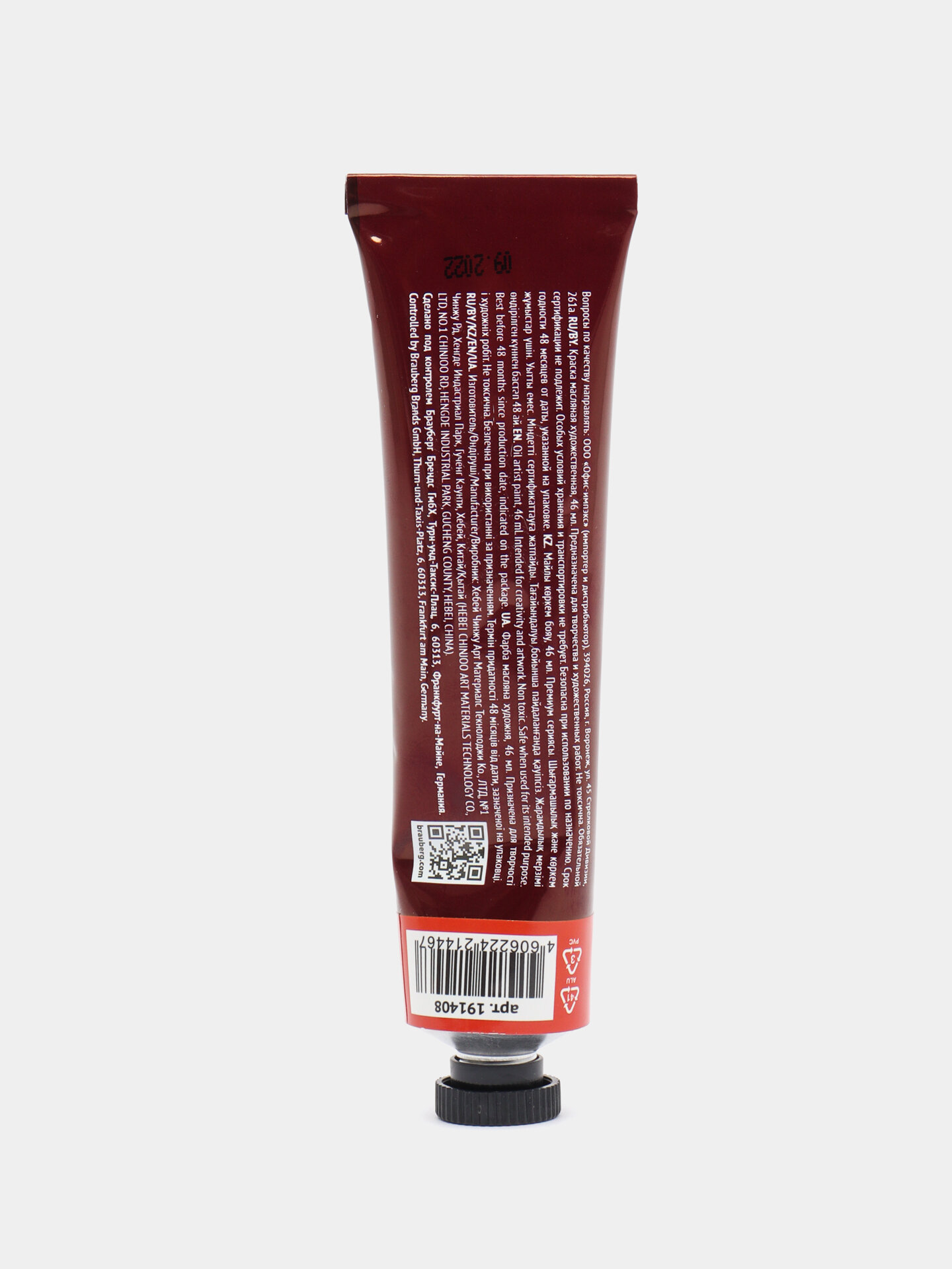 Краска масляная художественная BRAUBERG ART PREMIERE, 46 мл, проф. серия, ализариновая красн, 191409