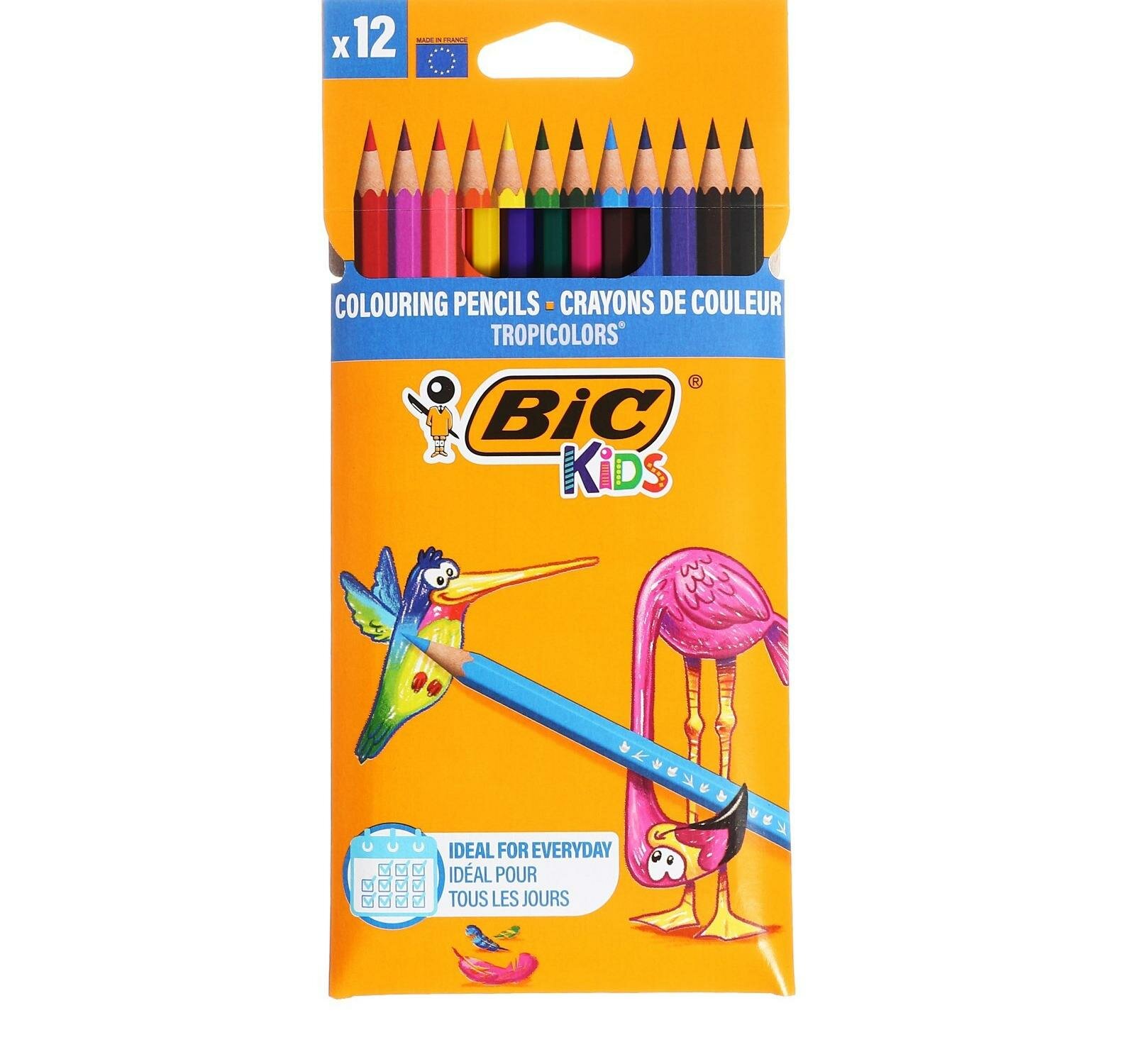 Цветные карандаши 12 цветов, детские, шестигранные, ударопрочные, BIC Kids Tropicolors 1314701 .