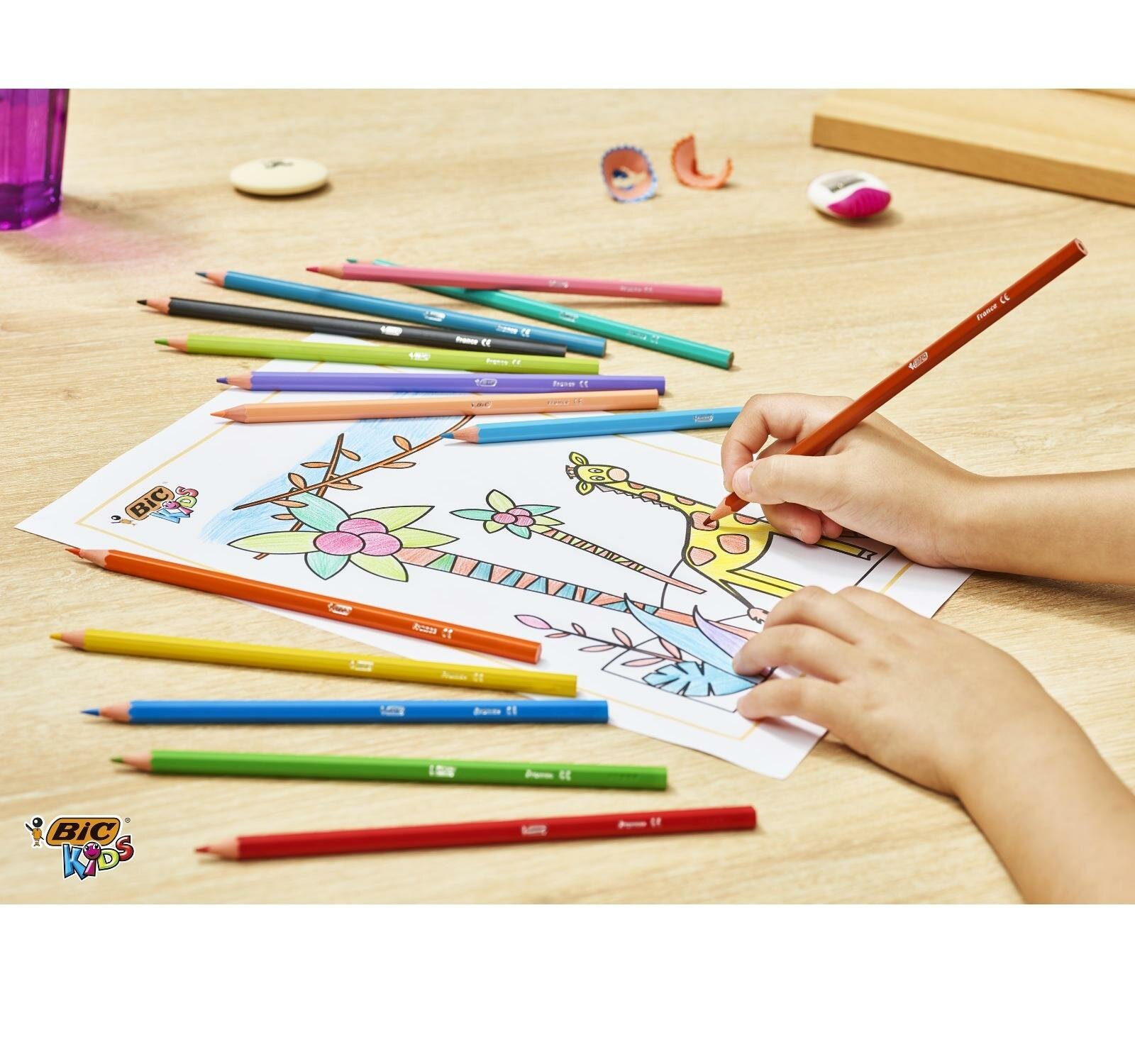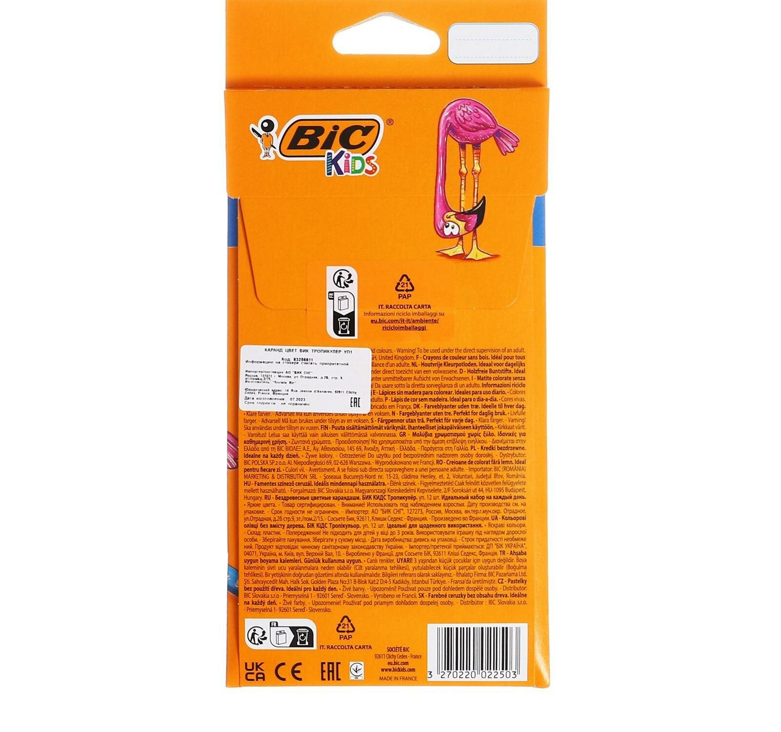 BIC Карандаши 12 цветов, детские, шестигранные, BIC Kids Tropicolors, пластиковые, ударопрочный грифель 3.2мм, картонная упаковка