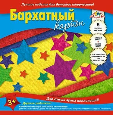 Цветной картон Апплика бархатный, А5, 5 листов, "Звезды" (С0399-05) интересное:
