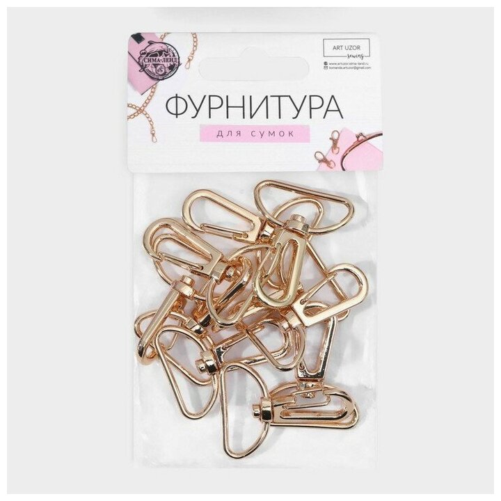 Карабины металлические Арт Узор 3,9*3,1см/25*2,2 мм, 10 штук, цвет золотой (3780086)