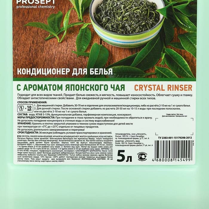 Кондиционер для белья Crystal Rinser "Японский чай", концентрат, 5л./В упаковке шт: 1 интересное: