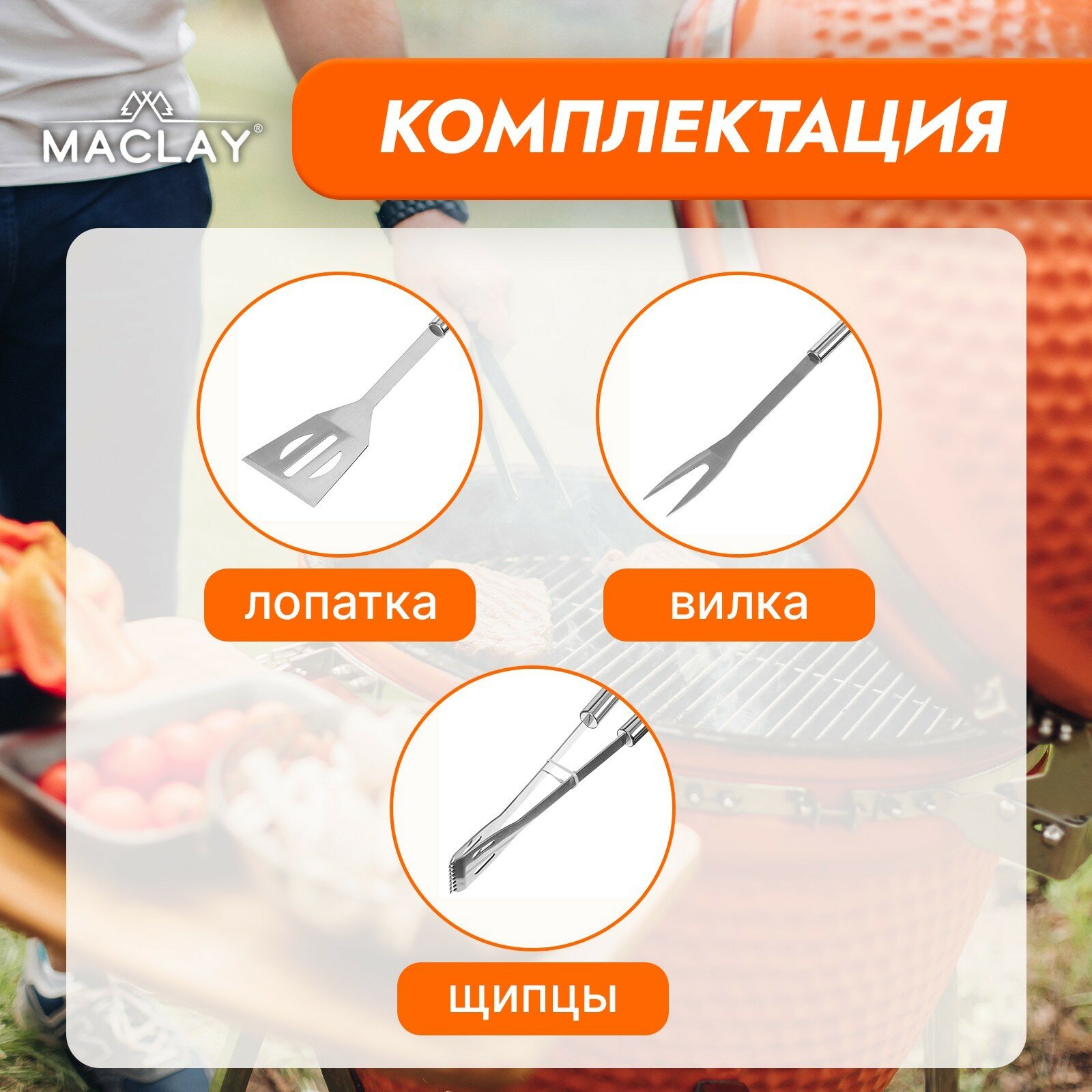 Набор для барбекю (вилка, щипцы,лопатка) 38,5 см Maclay 7474648 .