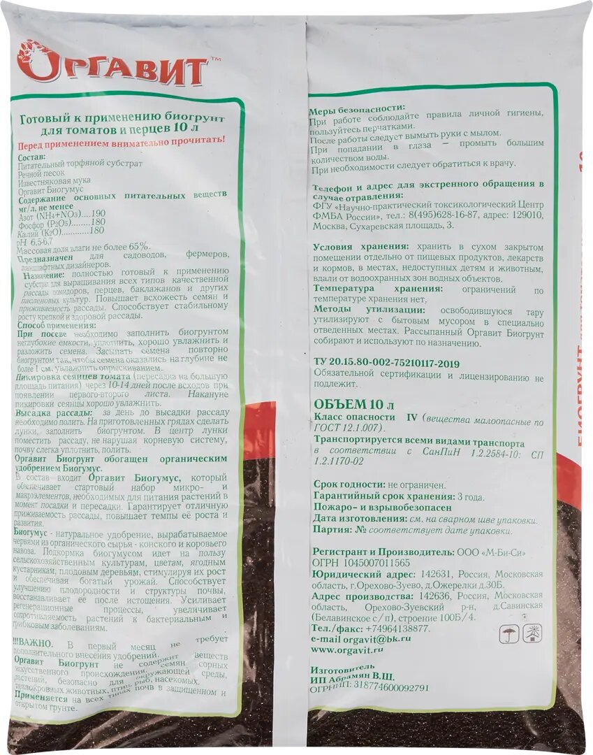 Грунт на основе биогумуса Оргавит для Томатов и перцев, 10 л интересное: