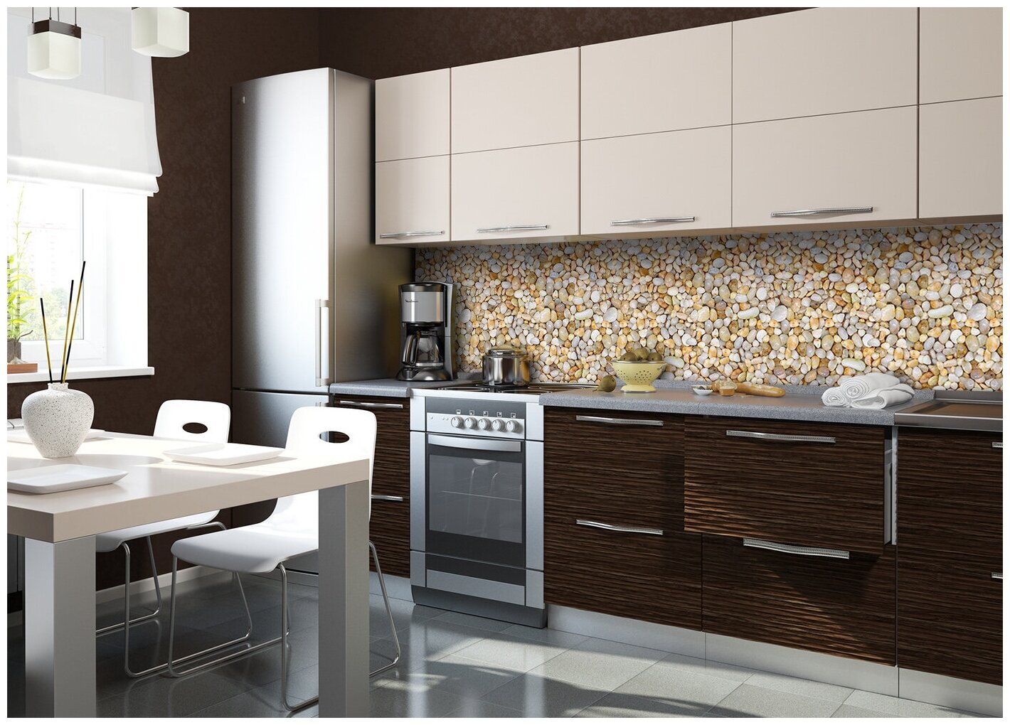 Купить Кухонный фартук с 3D покрытием "Галька" 3000*600*1,5 мм, АБС пластик, термоперевод с жиростойким глянцевым покрытием