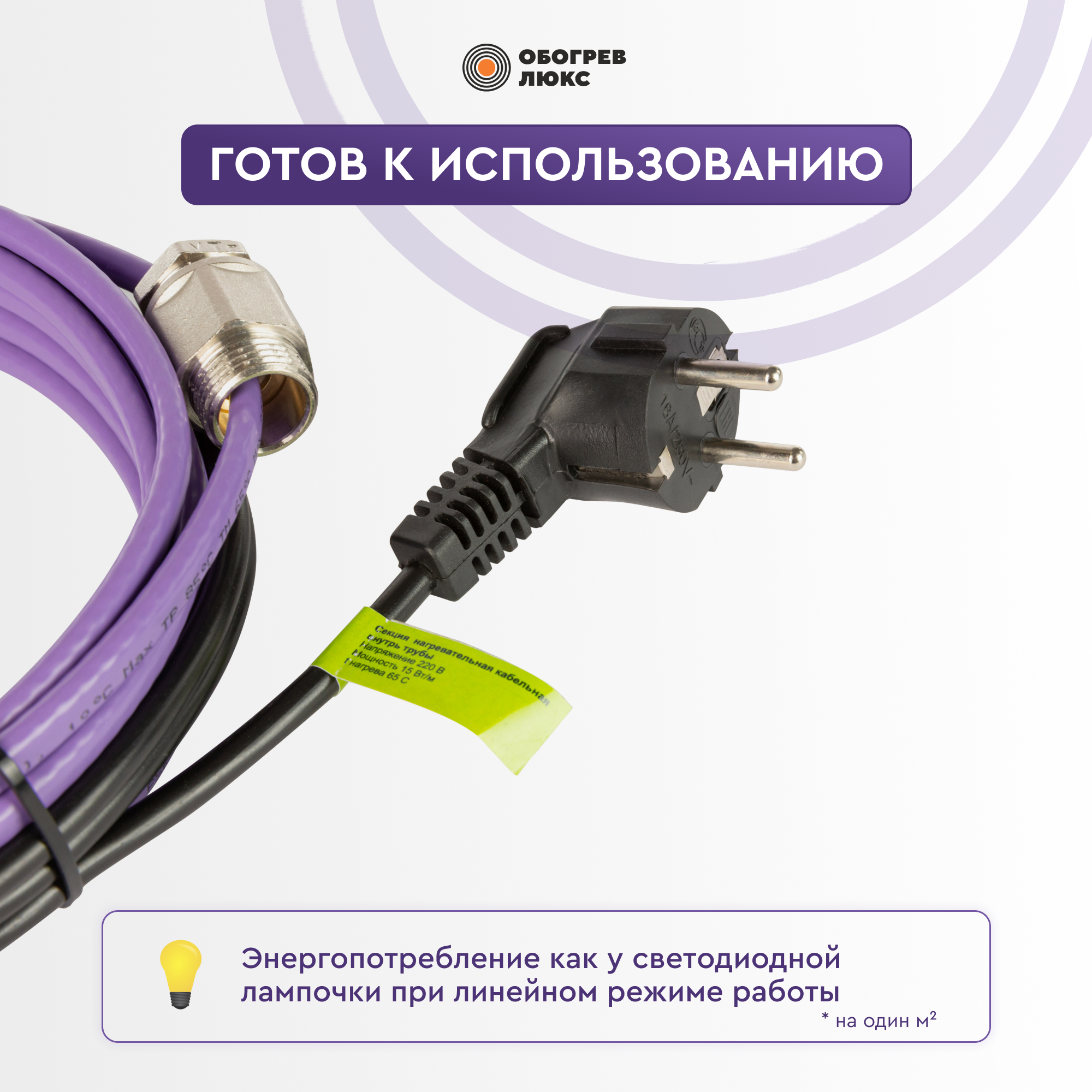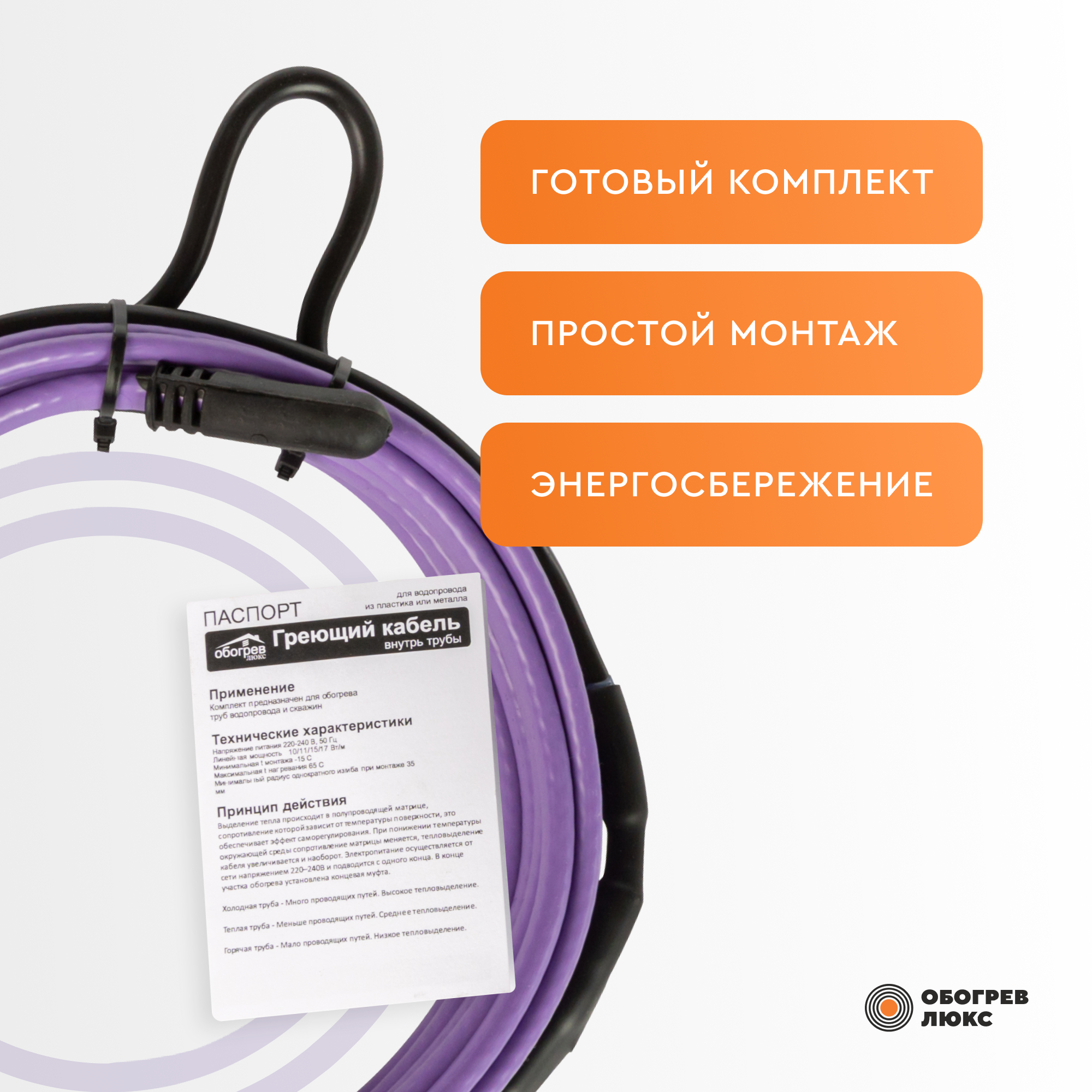 Греющий кабель обогрев люкс Греющий саморегулирующийся кабель в трубу 6 метров Обогрев Люкс с сальником