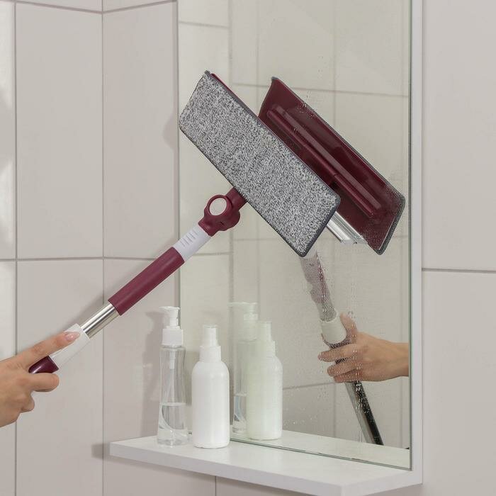 Доляна Окномойка с насадкой из микрофибры Доляна, фиксатор, стальная телескопическая ручка, 27×8×86(126) см, цвет микс интересное: