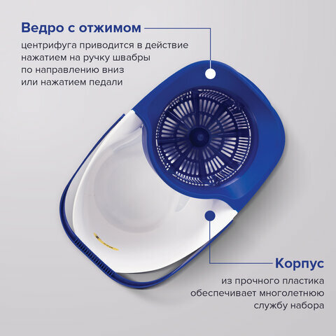 Лайма Набор для уборки,ведро 18 л с отжимом и педалью, швабра с круглой и плоской насадкой, 603625 .