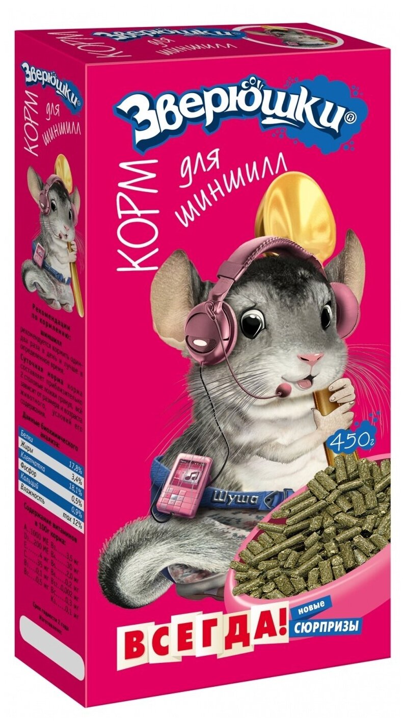 Корм "Зверюшки" для шиншилл (+подарок), 450 г 2085120