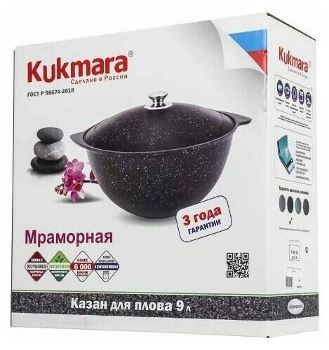 Казан Kukmara кмт95а литой 9,0 л для плова (темный мрамор) интересное: