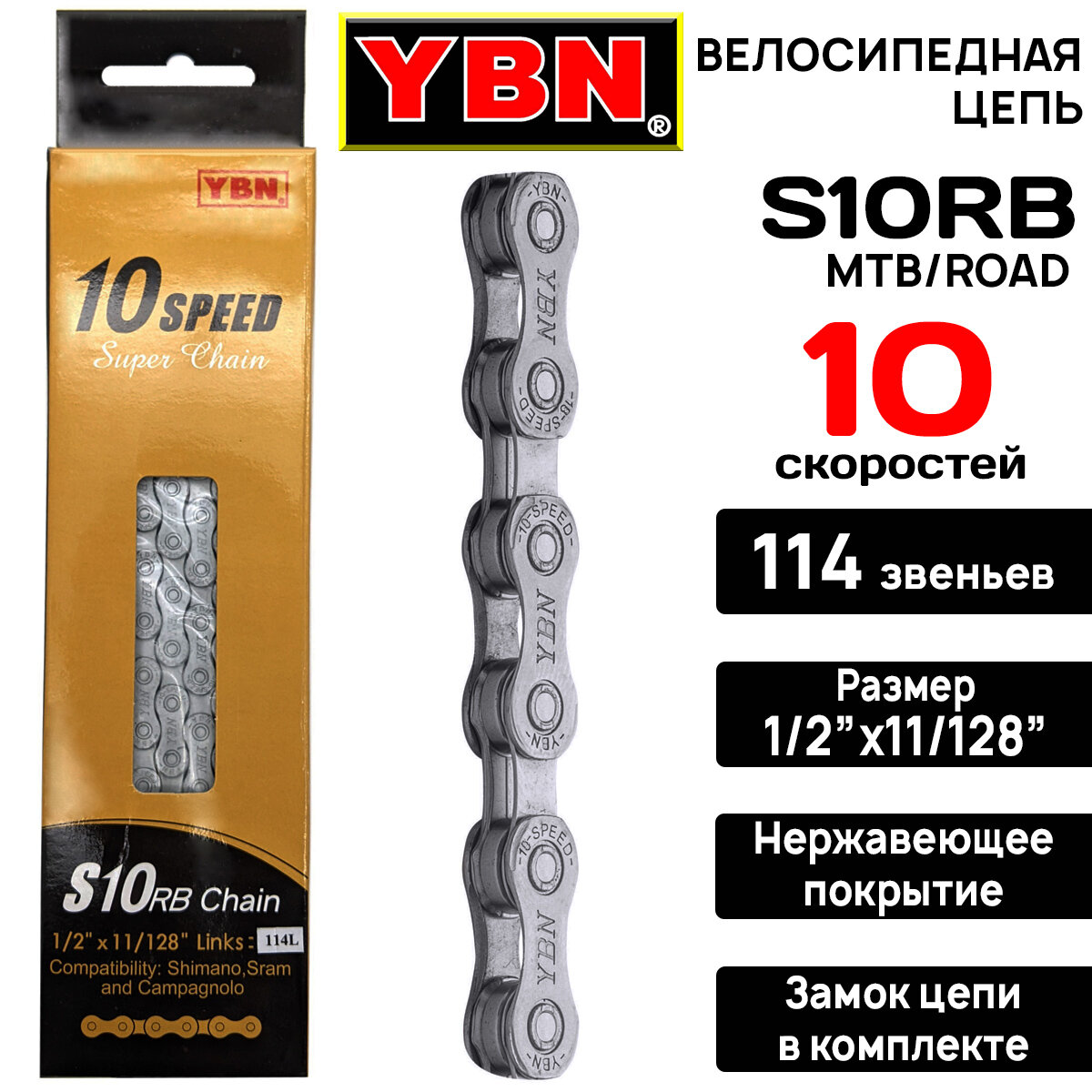 Цепь для велосипеда YBN S10RB, на 10 скоростей, 1/2х11/128", 114 звеньев, нержавеющее покрытие, замок цепи в комплекте, серая интересное: