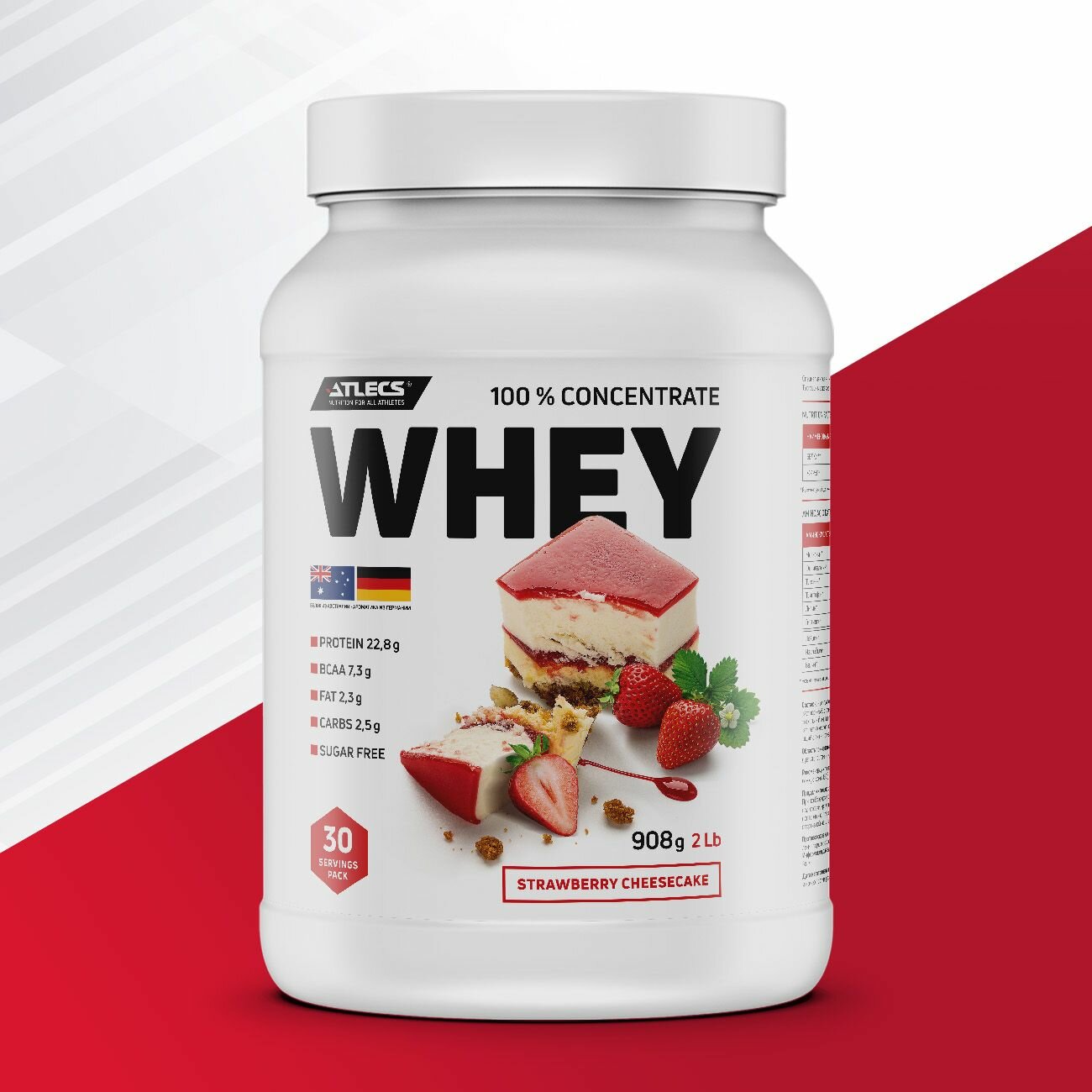 Купить Atlecs Whey Protein 908 g, (клубничный чизкейк)
