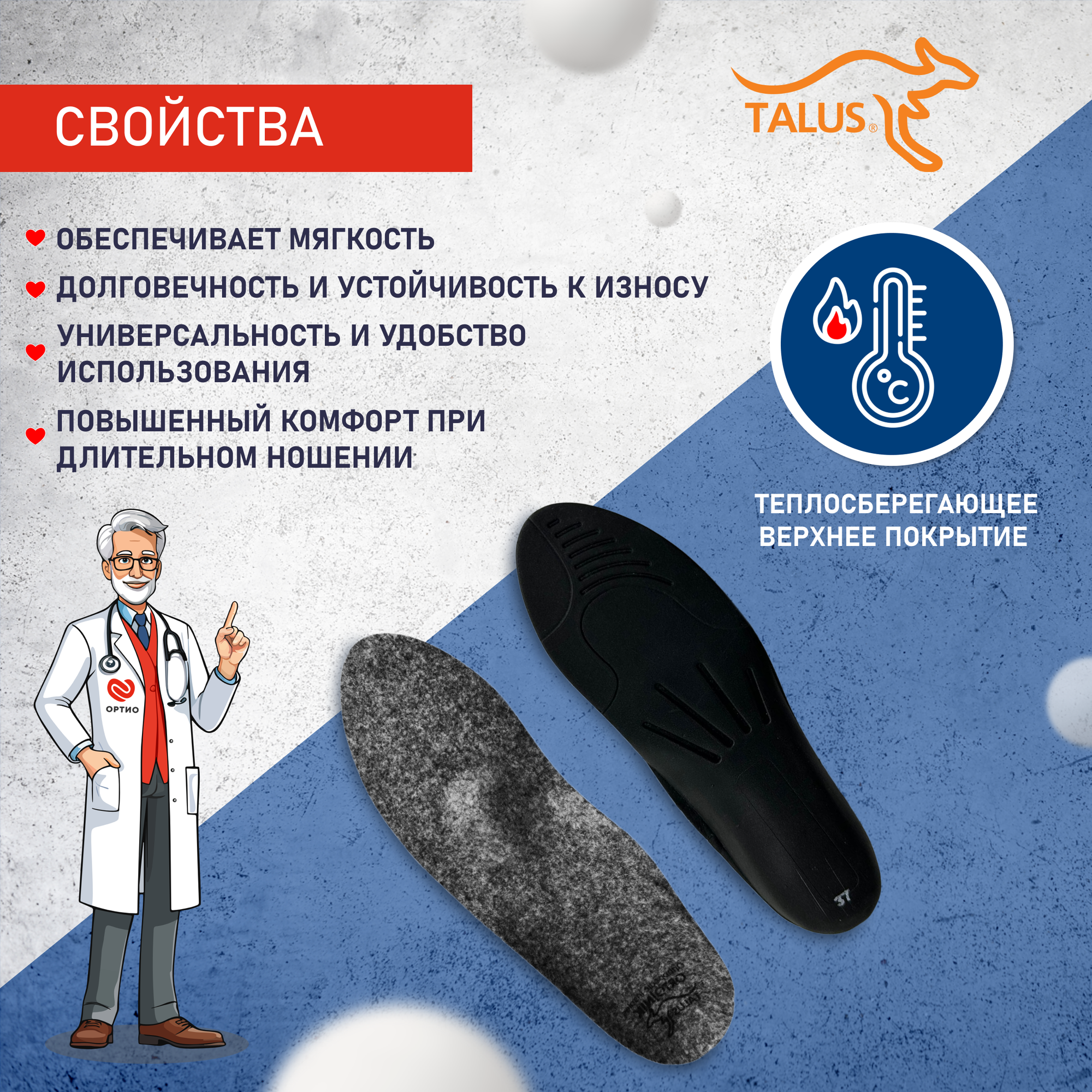 Стельки ортопедические лечебно-профилактические Talus Зима 31Е, Размер 37