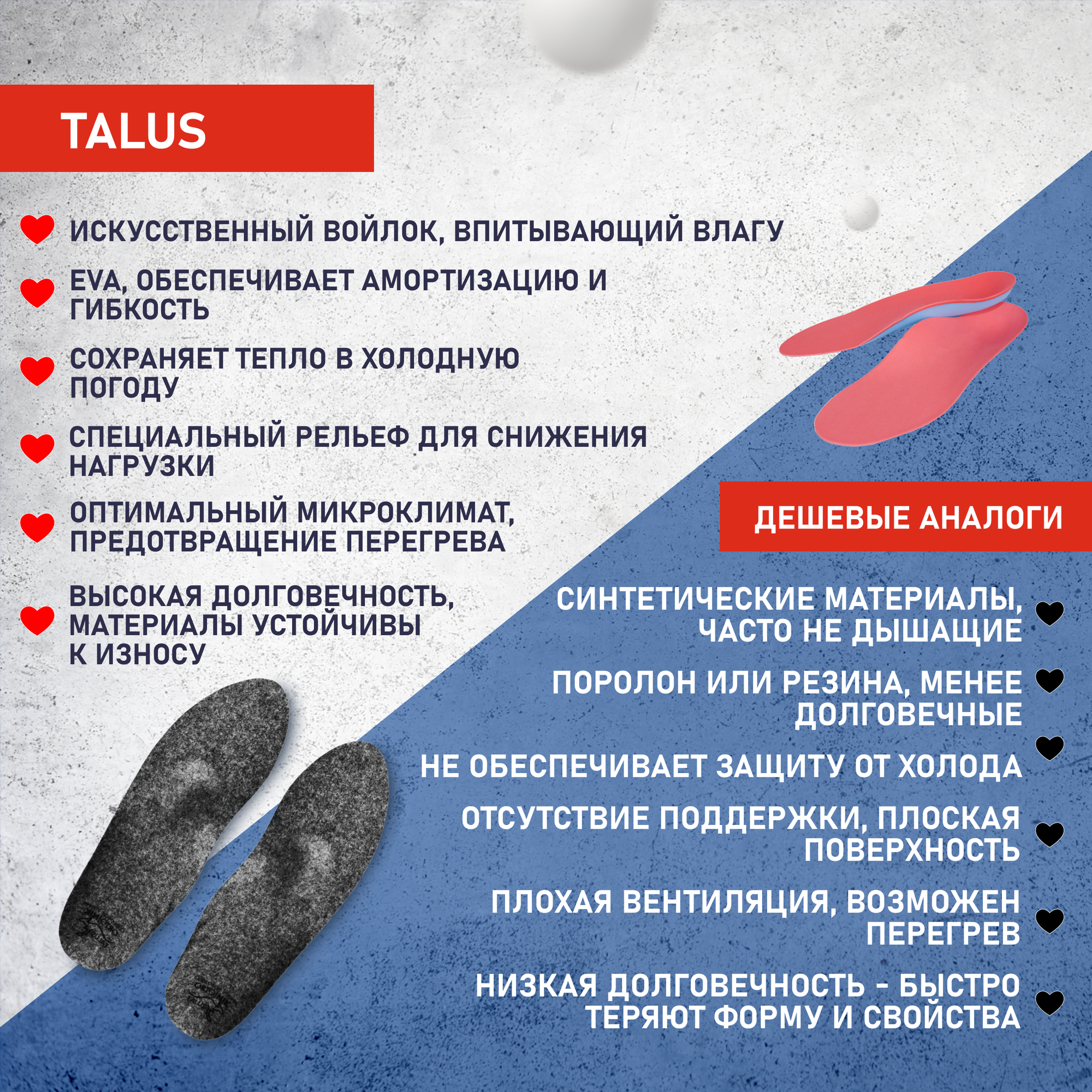 Стельки ортопедические Talus "Зима" каркасные, войлок, размер 45