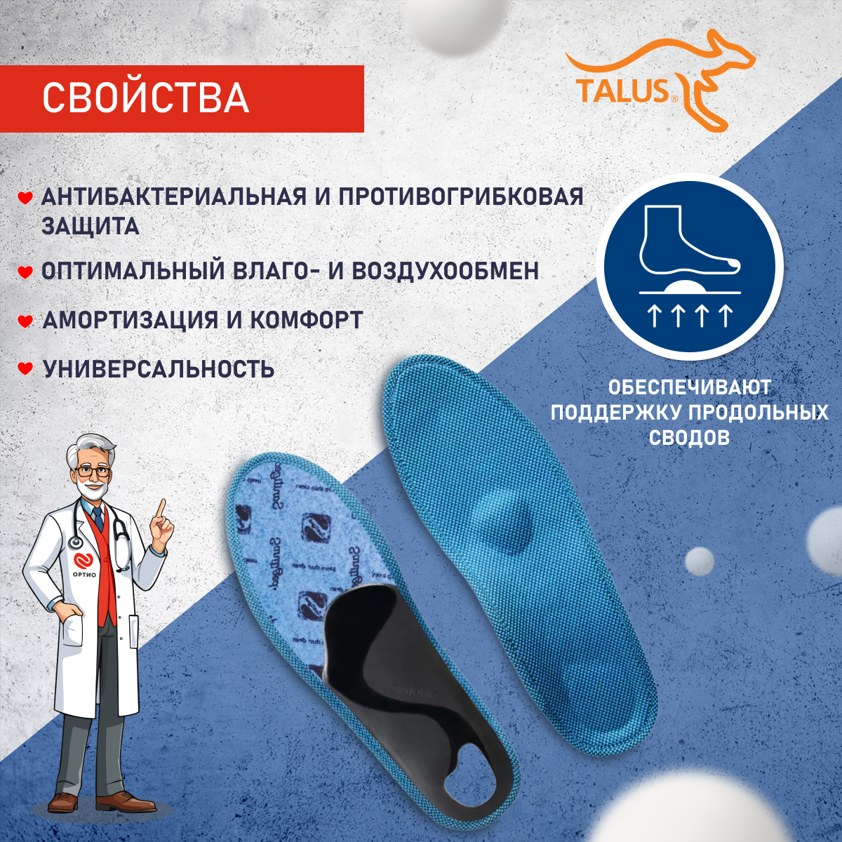 СохранитьTALUS Стельки ортопедические антибактериальные 92, р-р: 37, цвет: синий интересное: