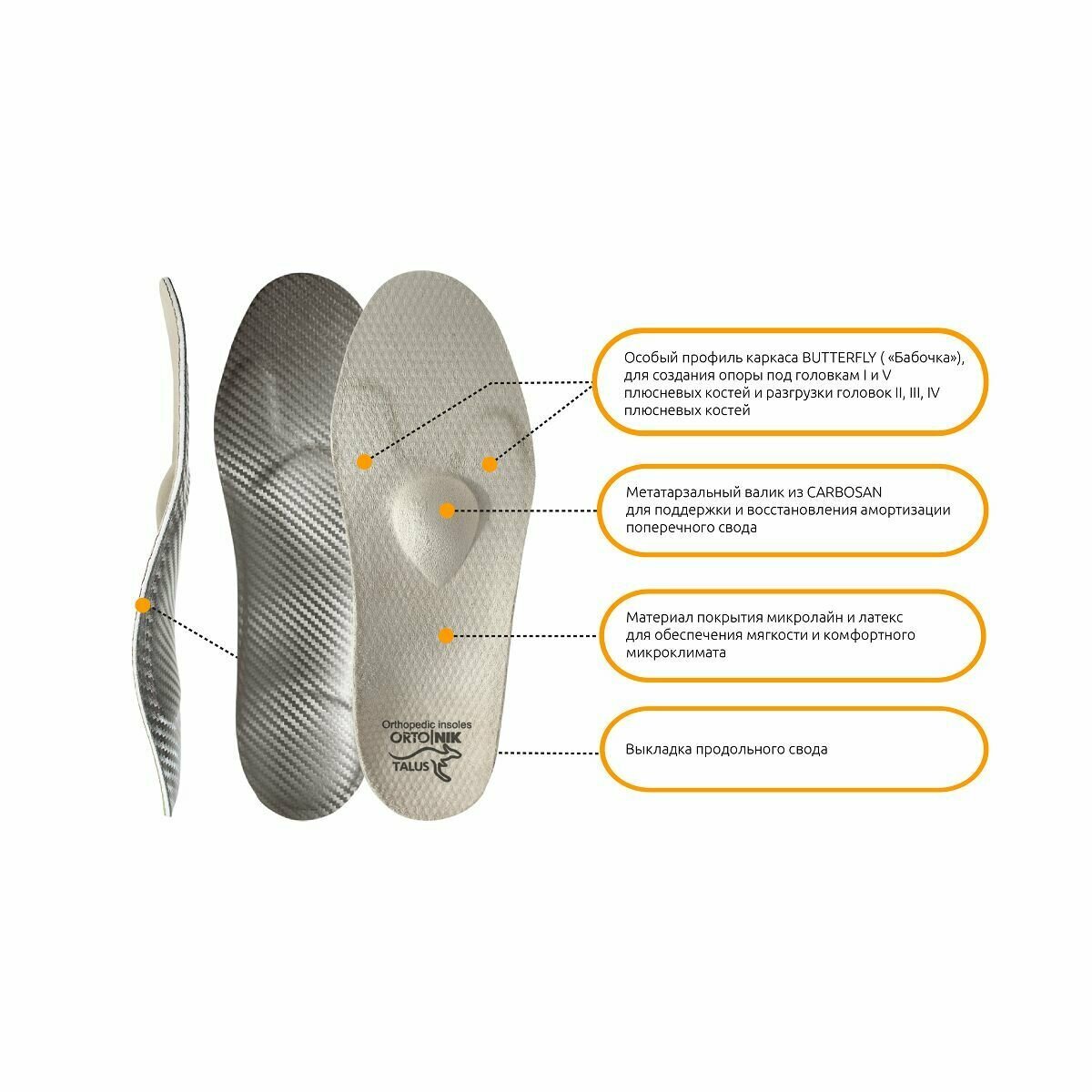 Стельки каркасные лечебные от косточки продольно поперечные бабочка talus 95