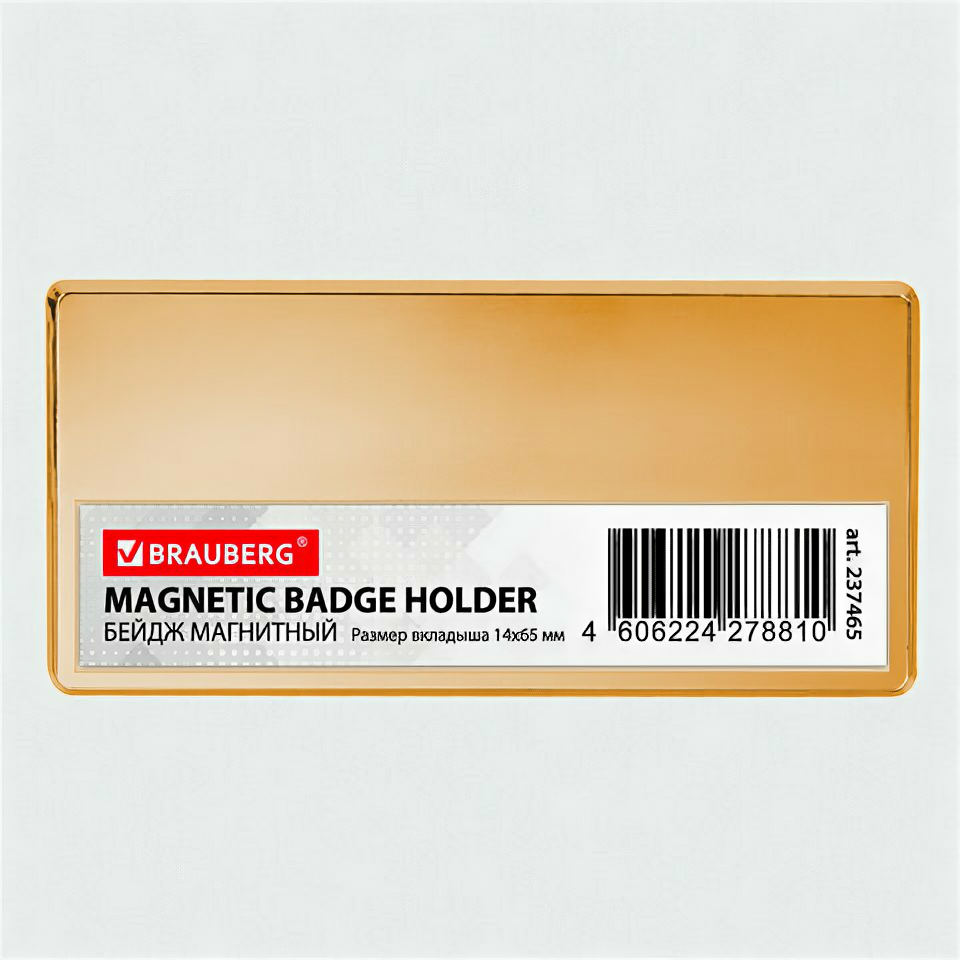 Бейдж магнитный золотистый 34х70 мм с окошком 14х65 мм, BRAUBERG, 237465 (цена за 1 ед.товара) интересное: